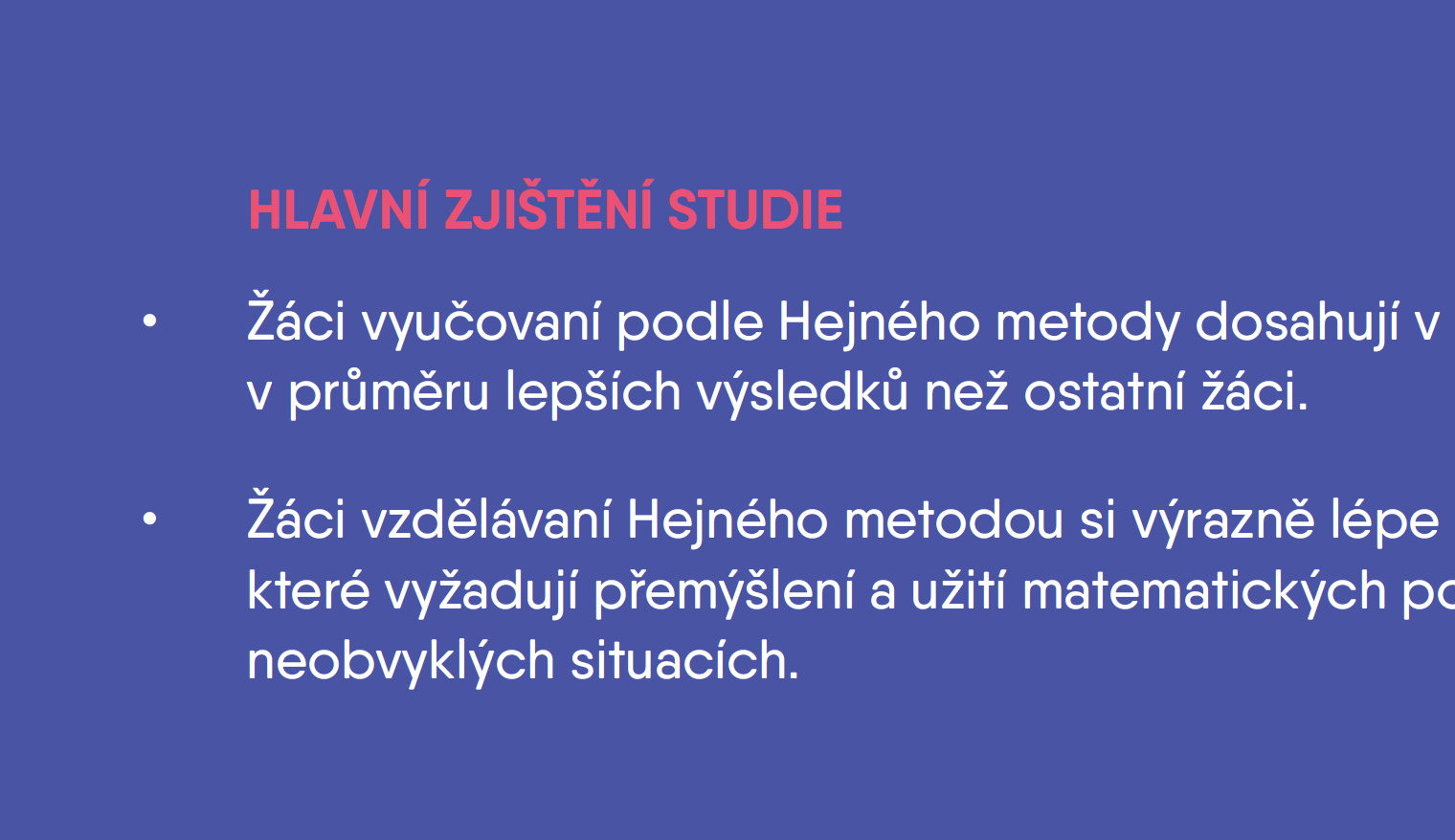 - 2022 Ústav výzkumu a rozvoje vzdělávání: Hejného metoda výuky matematiky v mezinárodním výzkumu TIMSS